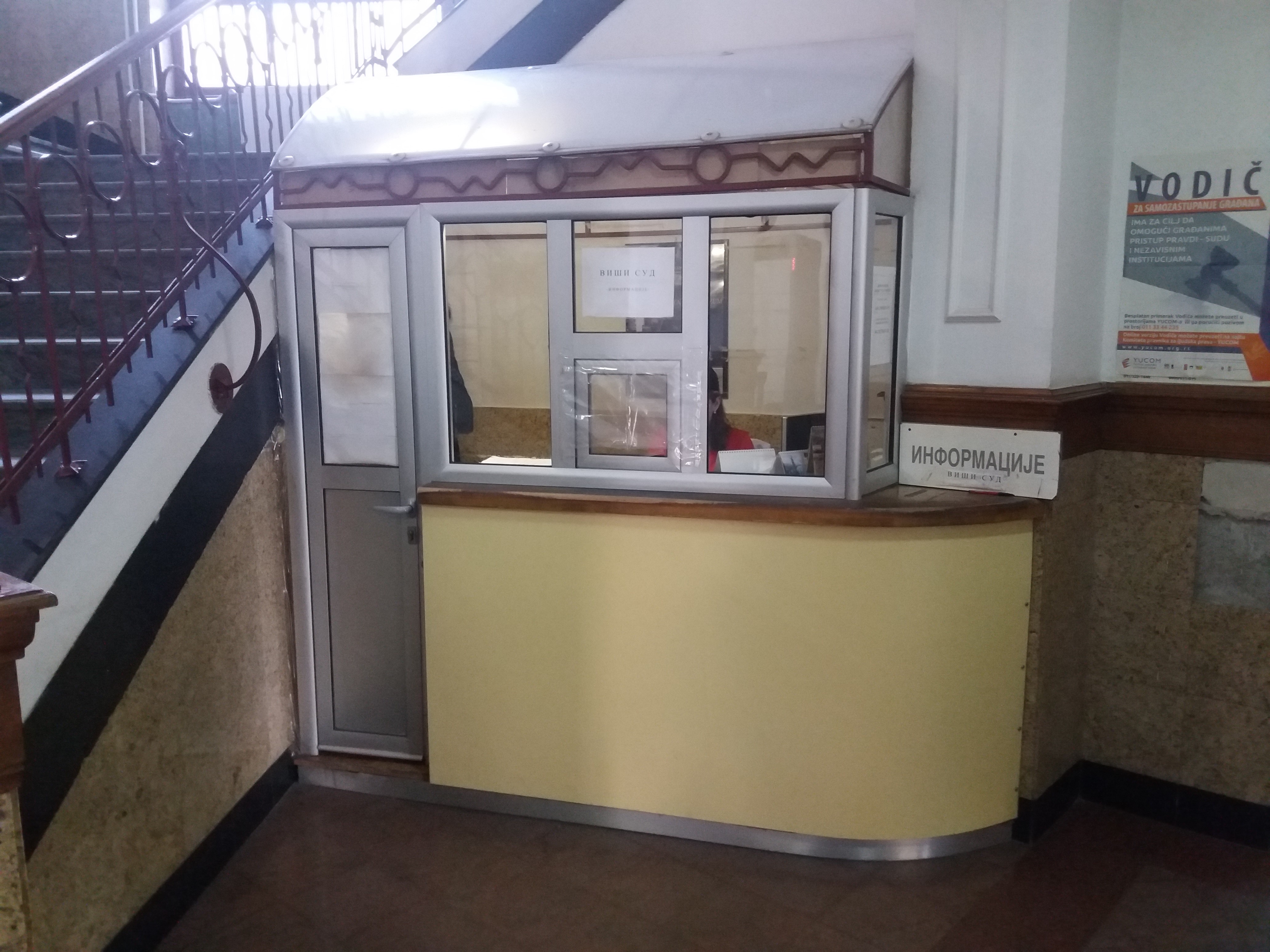 Инфо пулт се налази одмах на улазу у зграду суда.