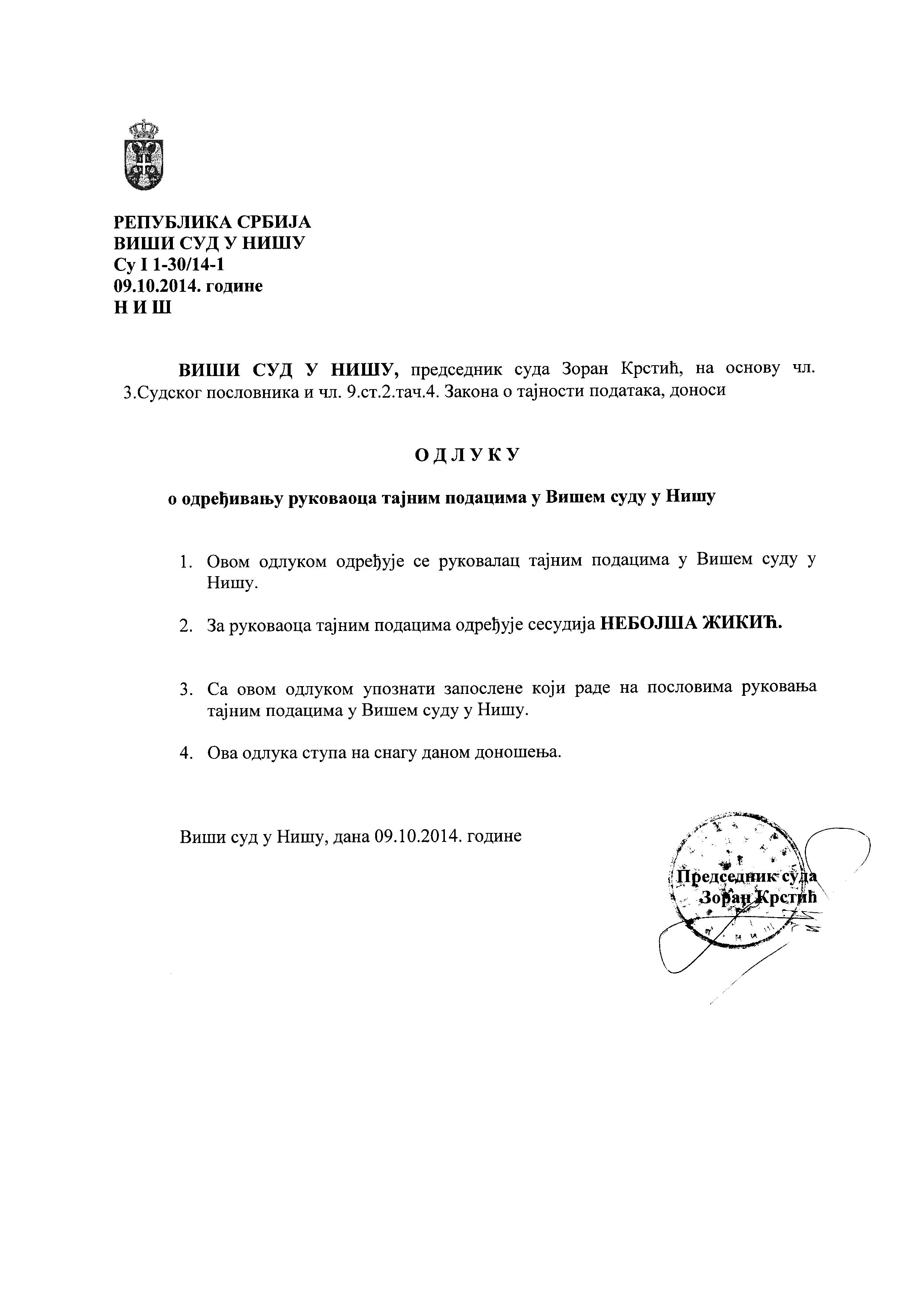 Контакт телефон руковаоца судије Небојше Жикића је 018/504-296
